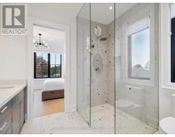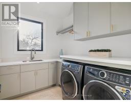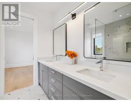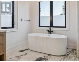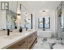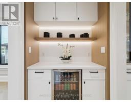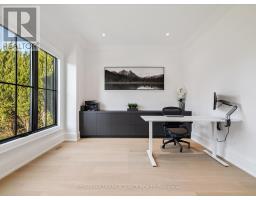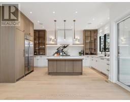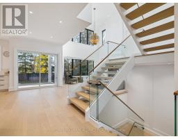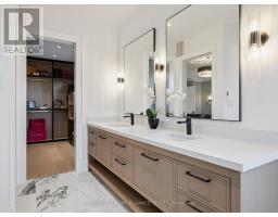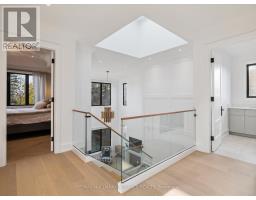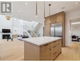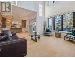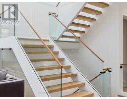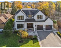Experience the perfect blend of modern sophistication and timeless craftsmanship in this new Keeren Design Modern Farmhouse, situated on an oversized 60' x 141' mature lot fronting onto a quiet park in desirable Southwest Oakville. Built to the highest standards with meticulous attention to detail, this home features a double-height open to above great room and the oversize windows and a central skylight fills the home with natural light, 7" wide select hardwood flooring, 9" baseboards, oversized 5" casings, and solid wood trendy trim work throughout. Expansive windows flood the interior with natural light, complemented by pot lights, built-in speakers, high-end Riobel fixtures, Restoration Hardwares. The stunning Misani Custom Design kitchen showcases full quartz slab countertops and backsplash, Wolf gas range, Sub-Zero refrigerator, Miele dishwasher and microwave, and prep pantry kitchen-ideal for family living and entertaining. A sleek micro-concrete modern fireplace enhances the main floor's contemporary aesthetic. Upstairs, the primary suite features 10ft tray ceilings, artistic ceiling details, a spa-like ensuite with dual steam shower, freestanding tub, and heated smart toilet. Each bedroom offers private access to ensuites with curb-less frameless-glass Italian porcelain showers. The finished lower level includes wide-plank hardwood flooring, a recreation room, bedroom with office nook, and a custom Saunacore cedar sauna with frameless glass. Exterior features include Fraser cedar siding, custom cedar garage doors, covered porch with gas line, and a multi-zone irrigation system. The oversized garage accommodates a 20' vehicle or boat with ultra-quiet jack-lift openers. An architectural masterpiece combining elegance, functionality, and location-just minutes from Appleby College and other top-rated schools, Coronation Park, the lake and Go stations and highways. (id:61594)