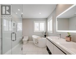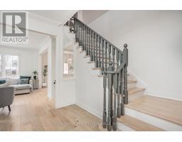 Beautifully upgraded two-storey 2,130 sq ft detached home in the highly sought-after, family-friendly West Oak Trails community. Thoughtfully renovated and filled with natural light, this home offers the perfect blend of style, comfort, and functionality.Curb appeal shines with professionally installed interlock stonework and modern LED pot lights guiding you to the front entrance. Inside, enjoy 9-foot ceilings, upgraded hardwood floors, premium paint, extra-wide crown moulding, and stylish lighting throughout the main level. The open-concept layout is ideal for everyday living and entertaining.The heart of the home is the modern kitchen (2021) featuring quartz countertops and backsplash, top-of-the-line stainless steel appliances, and a bright breakfast area with a walkout to an impressive two-level Trex deck-a low-maintenance outdoor space perfect for hosting or relaxing. The main floor also includes a cozy gas fireplace, upgraded powder room, convenient laundry with new washer and dryer, and custom Hunter Douglas roller shades.Upstairs, you'll find four spacious and sun-filled bedrooms, including a luxurious primary retreat with a spa-inspired 5-piece ensuite offering heated floors, a standalone soaker tub, walk-in glass shower, and upgraded double vanity.The basement provides excellent future potential with a rough-in for a full bathroom and an extra-large cold room. Additional features include owned furnace and air conditioner, central vacuum, interlock stone in both the front and backyard, and exceptional backyard privacy during the spring, summer, and fall.Ideally located close to top-rated schools, parks, public transit, major highways, and the new hospital, this move-in-ready home delivers elegance, comfort, and convenience in one of Oakville's most desirable neighbourhoods. (id:61594)