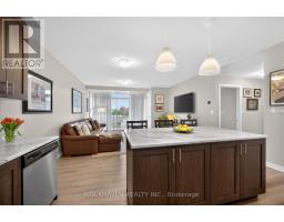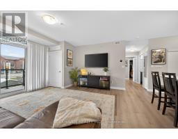 This residence offers an open-concept floorplan, providing a modern and seamless flow throughout the living space. With a total area of 1025 square feet, this space is designed for comfortable living and entertaining. The kitchen is equipped with stainless steel appliances, including a refrigerator, stove, and dishwasher. There is ample cabinetry for storage, while the kitchen island with breakfast bar adds both functionality and style. Under-cabinet lighting further enhances the workspace, making meal preparation convenient and enjoyable. Enjoy abundant natural light thanks to the floor-to-ceiling, wall-to-wall windows. A patio door leads directly to a private balcony, perfect for relaxing outdoors. Upgraded vinyl flooring is installed throughout the home, offering durability and ease of maintenance. There is no carpet, making cleaning straightforward. The primary bedroom includes a walk-in closet and a private ensuite. The ensuite is equipped with an oversized glass shower and a vanity with two sinks, combining luxury with practicality. This property is ideally situated close to shopping, restaurants, and all local amenities. Public transit is also easily accessible, making commuting simple and convenient. Underground parking and a storage locker, providing secure and accessible options for your vehicle and belongings. (id:61594)