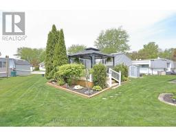 Updated one floor living in the gated leased land community of Grand Cove. Located on a quiet cul-de-sac this home shows of its great curb appeal the moment you turn down the street. Landscaped gardens provide color and beauty around the home while the vinyl siding, metal roof with gutter guards, front and side porches with vinyl railings and composite decking provide a low maintenance great looking appearance. Outside in the backyard you have a large deck with a covered gazebo overlooking your back lawn. Inside, the home was professionally updated in 2004 by Rice Homes featuring drywalled ceilings and walls throughout and constantly improved over the years with recent updates including the furnace and AC in 2019 and new flooring throughout about 9 years ago. The spacious design of the floor plan and large windows allow for large principle rooms flowing with natural light. The living room at the front of the home includes a large picture window overlooking the front entrance, gas fireplace and high quality laminate flooring that flows into the front foyer and dining area off the kitchen. Galley style kitchen with white cabinetry, tile backsplash and eat up countertop. The cabinetry from the kitchen extends into the adjacent laundry area for extra storage and closet space. Added living space in the family room that overlooks the back yard with patio doors leading to the back deck. Main floor primary bedroom with walk through closet and ensuite. Guest room for family and friends and a full bath off the bedroom hall completes the floor plan. Grand Cove Estates is a land lease community located in the heart of Grand Bend. Grand Cove has activities for everybody from the heated salt water pool, tennis courts, wood working shop, garden plots, lawn bowling, nature trails and so much more. All this and your only a short walk to downtown Grand Bend and the sandy beaches of Lake Huron with the world famous sunsets. Come view this home today and enjoy life in Grand Bend! (id:61594)
