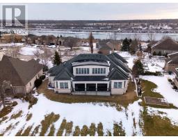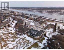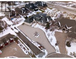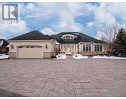Welcome to Muirfield Trail - a 3,647 sq ft custom estate built in 2014 by Homes by Hendriks. Set on an oversized premium lot with canal views, this residence offers privacy and a commanding presence. A circular driveway framed by mature landscaping creates a grand arrival while accommodating parking for up to 12 vehicles. Designed for refined main-floor living, the layout blends elegance and function. The private primary wing features dual walk-in closets and a luxurious six-piece ensuite. Two additional rooms along this corridor, originally designed as his-and-hers offices, offer flexibility as bedrooms, nursery, or a den. Upstairs, two generously sized bedrooms each include private bathrooms. Expansive patio doors flood the main living space with natural light. Seamless flow connects the garage through a secondary foyer, pantry, and laundry to the oversized custom kitchen, complete with paneled high-end appliances and curated stone and tile finishes. The finished lower level adds versatility with a powder room, storage, cedar-lined closet rooms, and spacious recreation area ideal for entertaining or extended family living. Located in The Highlands, one of Welland's premier adult lifestyle communities, residents enjoy maintenance-free living with lawn care and snow removal included, plus access to a private clubhouse with saltwater pool, fitness centre, tennis and pickleball courts, and vibrant social programming. An exceptional estate defined by craftsmanship and resort-calibre living. (id:61594)