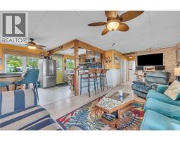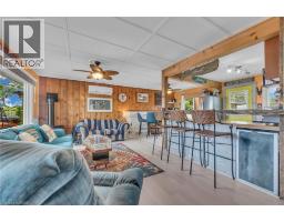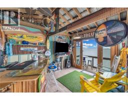 Wasting away in “Margaritaville”. Discover this waterfront “Party-Central” venue - and there is good chance you may never leave - as you embrace panoramic water views from beautiful glass panelled deck incs “Beachcomber” hot tub, private “Jimmy Buffet” designed Tiki Hut offering lake front balcony plus huge concrete entertainment area mounted on re-built concrete break-wall incs built-in steps leading to sand beach. Beachie themed year round cottage showcases modern kitchen sporting ample cabinetry, tile back-splash, live-edge wood breakfast bar, SS appliances, dinette, adjacent living room ftrs p/g Napoleon fireplace & sliding door deck walk-out - seamlessly flows to sun-splashed family room - completed with 3 bedrooms & 4pc bath. Desired north side lot (separate PIN#) incs 12x20 metal clad garage w/concrete flooring, 6x8 multi-purpose bunkie/building boasts retractable loft enjoying solar lighting + concrete double parking pad. continues Extras - ductless heat/cool HVAC-2022, standby generator/panel-2022, roof-2013, windows-2018, kitchen/bath flooring-2024, interior doors/hardware-2024, spray foam insulated under-floor-2022, cinder block foundation, holding tank, cistern, 2nd cistern, 100 hydro, fibre internet & majority of furnishing! 50 mins south of Hamilton - 15 mins west of Dunnville. Experience “Key-West” North! (id:61594)