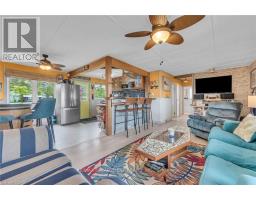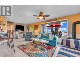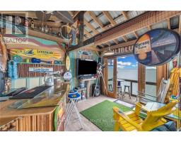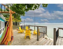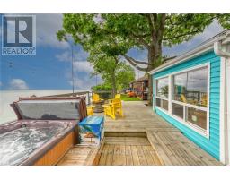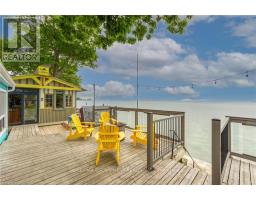 Wasting away in "Margaritaville". Discover this waterfront "Party-Central" venue - and there is good chance you may never leave - as you embrace panoramic water views from beautiful glass panelled deck incs "Beachcomber" hot tub, private "Jimmy Buffet" designed Tiki Hut offering lake front balcony plus huge concrete entertainment area mounted on re-built concrete break-wall incs built-in steps leading to sand beach. Beachie themed year round cottage showcases modern kitchen sporting ample cabinetry, tile back-splash, live-edge wood breakfast bar, SS appliances, dinette, adjacent living room ftrs p/g "Napoleon" fireplace & sliding door deck walk-out - seamlessly flows to sun-splashed family room - completed with 3 bedrooms & 4pc bath. Desired north side lot (separate PIN#) incs 12x20 metal clad garage w/concrete flooring, 6x8 multi-purpose bunkie/building boasts retractable loft enjoying solar lighting + concrete double parking pad. continues Extras - ductless heat/cool HVAC-2022, standby generator/panel-2022, roof-2013, windows-2018, kitchen/bath flooring-2024, interior doors/hardware-2024, spray foam insulated under-floor-2022, cinder block foundation, holding tank, cistern, 2nd cistern, 100 hydro, fibre internet & majority of furnishing! 50 mins south of Hamilton - 15 mins west of Dunnville. Experience "Key-West" North! (id:61594)