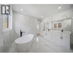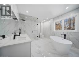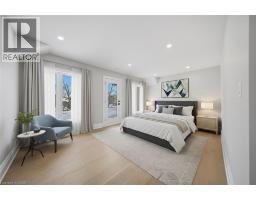 Welcome to this exceptional residence in the prestigious and highly sought-after Bronte neighbourhood, where architectural elegance meets modern luxury. Newly built on the existing foundation through an extensive full renovation with approximately $1M invested, this stunning home offers over 3,000 sq. ft. of total living space, including a legal basement apartment. Soaring 14-foot ceilings and expansive windows fill the main level with natural light. The thoughtfully designed layout features three spacious bedrooms and two full bathrooms on the main floor, while the private primary retreat is set on an upper-level loft. This serene suite showcases a spa-inspired 5-piece ensuite, a generous walk-in closet, and a rare walkout to a glass-enclosed balcony. The open-concept living, dining, and kitchen areas are ideal for both everyday living and upscale entertaining. The designer kitchen is equipped with premium built-in JennAir appliances, quartz countertops, crisp white cabinetry, an oversized centre island, custom pantry storage, and a discreet computer niche. The fully finished legal basement offers two bedrooms, two full bathrooms, stainless steel appliances, separate laundry, and a private entrance — perfect for extended family or income potential. An oversized, well-insulated workshop at the rear adds rare versatility. Ideally located near QE Community Park, top schools, Bronte Harbour, Bronte GO Station, and major highways, this remarkable home delivers luxury, functionality, and an unbeatable location.**Virtually Staged Pictures** (id:61594)