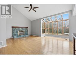 Tucked away at the end of a quiet court, this exceptional 2-storey home sits on one of the most desirable lots in the neighbourhood. A rare, oversized pie-shaped property backing onto peaceful green space with incredible privacy. Flooded with natural light from soaring vaulted ceilings and expansive windows, the home offers an inviting and airy layout designed for comfortable family living along with cozy evenings by the fireplace. The elegant spiral staircase leads to a bright open loft, four spacious bedrooms, including a generous primary retreat complete with a private ensuite and a full bathroom. The main floor features a convenient powder room, laundry room, bright principal living spaces ideal for both everyday living and entertaining as well as a separate family room. The finished basement adds valuable bonus space along with an additional full bathroom and second fireplace. Perfect for recreation, guests, or a home office setup. Step outside to a beautifully positioned deck and gazebo overlooking lush natural surroundings, an ideal setting for relaxing or hosting gatherings or just take in the sounds of nature. The expansive backyard offers endless possibilities, with ample space for a large pool while still maintaining plenty of green space for kids, pets, and outdoor activities. A rare opportunity to enjoy privacy, nature, convenient highway access and family living all in one remarkable Burlington location. (id:61594)