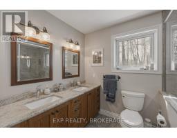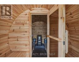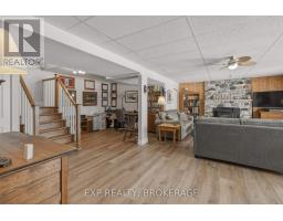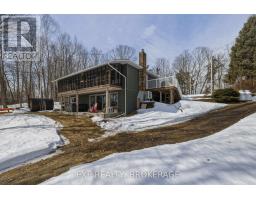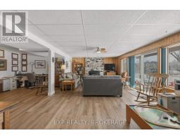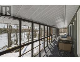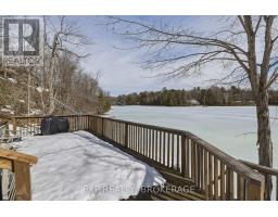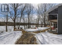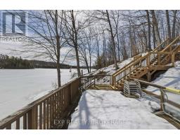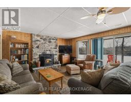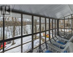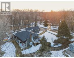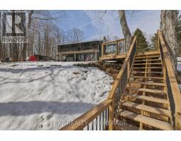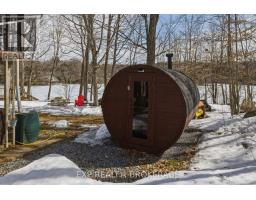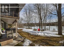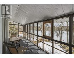 Nestled on a terraced 2/3-acre lot, this meticulously maintained 3-bedroom, 2-bath home combines thoughtful renovations with comfortable living - all just 25 minutes north of Hwy 401 on spectacular Hambly Lake. The bright, open main level is designed to take advantage of the waterfront setting. A full-length screened porch frames lake vistas and creates an ideal spot for morning coffee or anytime relaxation. The main floor was renovated in 2015 with upgraded insulation, custom cabinetry, granite countertops, hardwood and tile flooring, and a spa-inspired glass-enclosed wet room in the main bath. The primary suite on the main floor offers privacy and convenience, a walk-in closet and direct access to the main bathroom. A sliding pocket door can separate the suite, main bath, and laundry/mudroom from the main living area. The walk-out lower level is tailored for family life or entertaining. A cozy family room centred around a pellet stove creates a warm gathering area, while a home office area supports remote work. Two additional bedrooms share a Jack-and-Jill 4-piece bath, and a sunroom offers a second walk-out for versatile storage or seasonal use. Exterior and system improvements combine curb appeal with long-term reliability: new siding, gutters, wrap-around deck and front entry (2015-16); 25-year architectural shingles (2020); new garage doors (2023); improved lakeside stairs and landings; efficient heat pump supplemented by hot water heating coil from on-demand propane water heater (2025), and Celebright programmable exterior LED lighting (2025). See Documents Section for complete list of Features and Improvements. Hambly Lake is connected to Verona and Howes Lakes via Hardwood Creek, providing excellent summer recreation - swimming, boating, fishing and paddling - and classic winter activities such as skating, sledding and cross-country skiing. With sauna and hot tub, this lovely waterfront home blends comfort, style, and lakeside serenity. (id:61594)