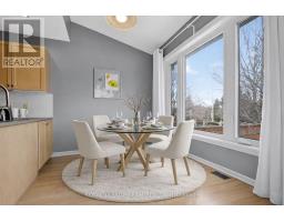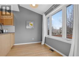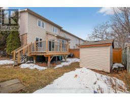 Lovely Holitzner built end unit townhome, located on a private court and on an amazing large lot with mature trees, in the central neighborhood of Katimavik. Three bedrooms, three baths, open plan living & dining room, eat-in kitchen with patio door to composite deck plus finished lower level with gas fireplace. Bonus free standing building/coach house (2022) used as an office, could also be a hobby room. Insulated, power, recessed lighting, engineered hardwood flooring (carpet tile on top).Private enlarged double driveway (4 car parking) with interlock near garage & interlock walkway to covered front porch. Tiled foyer and reception area, has a cut out with view of living room, double closet and entry to the garage is close by. Open living and dining room with updated laminate flooring and several updated windows, fantastic space for entertaining. Kitchen has many tall cabinets, tile backsplash, double stainless steel sink, updated faucet & appliances are included. Eating area in kitchen has vaulted ceiling and recessed lighting and beautiful views of yard. Patio door opens onto the composite deck, great for barbecues and relaxing. Powder room has newer vanity, sink and mirror. Second level with three good-sized bedrooms and two full baths. The primary bedroom has a big window with views of the court and a spacious walk-in closet. The ensuite bath has a vanity with sink, medicine cabinet, glass shelf and double shower with seat. Two more bedrooms with neutral decor, double closets, big windows and overhead lights. The linen closet and full bath is conveniently close by. The main bath has a combined tub and shower with tile surround and vanity with sink and medicine cabinet. Lower level with spacious family room, office area, plus a library area, laundry & utility room. Walk to many parks, schools, shops and Leisure Center. Minutes to bus on Castlefrank & convenient access to 417. Updated windows (2018), garage door & more. 24 hours irrevocable on all offers. (id:61594)