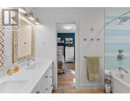 Welcome to one of Bayfield's most coveted locations, where charm meets sophistication just steps from Main Street and moments from the lake. This beautifully designed 4 bedroom, 3.5 bathroom home blends modern coastal elegance with the warmth of small-town living.Built in 2015 and meticulously maintained, the home offers an airy open-concept layout with vaulted ceilings, natural light, and thoughtful details throughout. The main floor showcases a designer kitchen with a large island that flows into the inviting living and dining areas, creating the perfect setting for entertaining or relaxed evenings by the fireplace. Two spacious bedrooms share a spa-inspired Jack and Jill bathroom, while the upper level is a serene retreat featuring a luxurious primary suite with a private ensuite and walk-in closet/home office/nursery room.The finished lower level extends the living space with an additional bedroom, a stylish three-piece bath, and a cozy family lounge ideal for guests or movie nights.Step outside to a private backyard oasis with a deck, hot tub, and fire pit, perfect for summer evenings under the stars. Enjoy morning coffee as you listen to the waves from nearby PioneerPark, or take a short stroll to Bayfield's boutique shops, cafes, and restaurants.Additional highlights include a Generac generator and the rare advantage of a municipal short-term rental license, offering both lifestyle and investment potential. Furniture and decor are negotiable for those seeking a turnkey experience.This is more than a home; it is the Bayfield lifestyle at its finest. (id:61594)