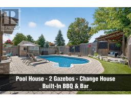WOW! STYLISH AND METICULOUS, THREE+1 BEDROOM BUNGALOW * CAR LOVERS DREAM THREE CAR GARAGE * FULLY FINISHED BASEMENT WITH SEPARATE ENTRACE TO GARAGE * EXTRA DEEP FULLY LANDSCAPED LOT WITH POOL * AND WALKING DISTANCE TO EVERYTHING BROOKLIN HAS TO OFFER! This exceptional property offers an unparalleled combination of luxury and functionality in a highly sought-after desirable neighbourhood. This lovely bungalow is nestled on a meticulously landscaped vacation style, private oasis property. This gleaming home features an excellent floor plan with nine foot ceilings. The formal living room can also serve as a private office or dining room. The gourmet kitchen is a culinary enthusiasts dream, equipped with a gas cooktop, built-in oven and microwave, stylish bar fridge, and elegant quartz countertops surrounding a large center island, that is complimented with a large quartz dining table. The adjacent family room features a stunning gas fireplace with custom built-in shelving and a walk-out to the spectacular backyard. The primary suite is a true sanctuary, overlooking the serene backyard and featuring his and her walk-in closets with built-in cabinetry. The luxurious ensuite offers a double vanity and a massive walk-in shower. The second and third bedrooms are generously sized and share a Jack and Jill bathroom. The fully finished basement has been expertly designed for entertainment, featuring a huge great room with fireplace, a fourth bedroom, a full washroom, and a custom wet bar with granite countertops. Beyond the interior, the property boasts a three-car dream garage with 4 garage roll-up doors, sep entrance to basement and a backyard that redefines outdoor living. This space is a dedicated entertainer's paradise, with a heated inground pool, multiple gazebos, a built-in BBQ/bar, and a change room. This home represents a rare opportunity for all generations to acquire a custom-built residence that provides a sophisticated and comfortable lifestyle. Welcome Home. (id:61594)
