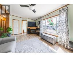$593 Monthly21 Elm Street – Meticulously Maintained & Full of Character in Mini Lakes. Discover cozy comfort and easy living at 21 Elm Street, a well-cared-for 2-bedroom, 1-bathroom bungalow in the heart of Mini Lakes—a vibrant gated community offering condo-style ownership and year-round enjoyment. This bright and cheerful home features a wrap-around deck, a sun-filled eat-in kitchen, and laminate flooring throughout. Unique touches and pride of ownership are evident in every corner, from the charming layout to the thoughtfully maintained finishes. You’ll also find a 3-season gazebo/sunroom—perfect for morning coffee, afternoon reading, or evening visits with friends. Stay comfortable year-round with natural gas heating, central air conditioning, and the added ambiance of a gas fireplace. Outdoors, enjoy double-wide parking, a powered shed for additional storage, and easy access to all of Mini Lakes’ activities. Whether you’re looking to downsize, retire, or simply embrace a slower pace in a welcoming and well-connected community, 21 Elm Street offers charm, quality, and simplicity—all just minutes to the 401 and south Guelph. (id:61594)