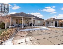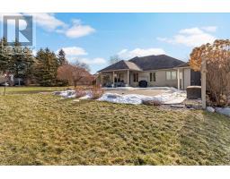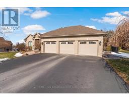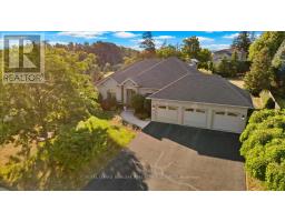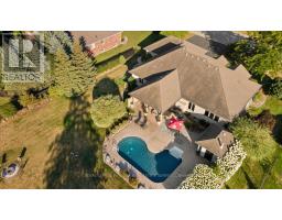 Exclusive Foxhill Estates. This exceptional bungalow offering almost 4,000 sq ft of beautifully finished living space on a private 1/2 acre lot surrounded by mature landscaping. Thoughtfully designed for both everyday comfort and elegant entertaining, this home offers 3+2 bedrooms and refined finishes throughout. The main level features hand-scraped oak flooring, oversized windows, pot lighting, espresso cherrywood cabinetry, and granite and marble surfaces. A formal dining room and private office provide flexible living spaces, while the grand family room showcases a striking stone fireplace. The kitchen includes custom cabinetry, granite counters, beverage fridge, breakfast bar, and a bright dinette with walkout to the backyard. The primary suite offers a walk-in closet and spa-like ensuite. Two additional bedrooms, a full bath, and convenient laundry/mudroom complete the main level. The fully finished lower level expands the living space with a large recreation and theatre area with gas fireplace, wet bar, games area, two additional bedrooms, 3-piece bath, workshop, and abundant storage. Outdoors, enjoy a private resort-style setting with heated saltwater pool, cabana, stamped concrete patio, covered seating area, and fully fenced yard. Triple car garage. Quiet street location. A rare opportunity in one of the area's most desirable estate communities. (id:61594)