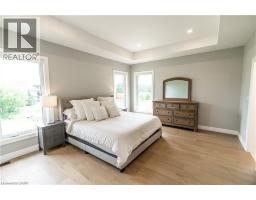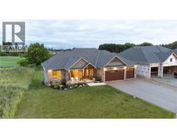 Welcome to 21 Hudson Drive, an exceptional custom bungalow walkout nestled on a quiet cul-de-sac in Brantford’s prestigious Green Acres executive community. Boasting over 4,600 sq ft of thoughtfully designed living space, this home offers luxurious finishes, stunning curb appeal with Muskoka-style gables, and convenient access to Hwy 403. The open-concept main floor centers around a dramatic great room with 11' coffered ceilings and a natural stone fireplace, flowing seamlessly into a chef’s kitchen featuring a 10' granite island, walk-in pantry, and access to a spacious laundry room with a custom dog wash. The dining room opens to a large covered deck—ideal for entertaining, BBQs, or stargazing. The primary suite is a private retreat with a 5-pc ensuite, large walk-in closet, and 10' coffered ceiling. Two additional bedrooms share a 4-pc bath, while a dedicated office with French doors and a powder room complete the main level. The expansive lower level offers a separate entrance from the garage and includes a massive recreation room, two more bedrooms, a 4-pc bath, and a versatile workout room that could serve as a sixth bedroom. Walk out to the lower patio and enjoy the beautifully landscaped and fenced backyard, perfect for family gatherings and quiet evenings by the fire. Aditional features include a 35' storage room with built-in shelving, a 3-car garage with custom dog shower and storage solutions, and proximity to top-rated schools, parks, trails, Brant Park Conservation Area, and everyday amenities. This is a rare opportunity to own a truly custom home in a peaceful, upscale neighborhood where luxury meets lifestyle. (id:61594)