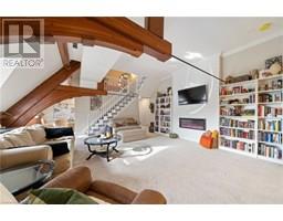 $788.02 MonthlyOne-of-a-Kind condominium in the heart of Brantford's historical Brant Ave. This fabulous unit is one of 13 private units from the astounding reno'd church. One of the larger units in this special development has 1,188 sq. ft and you'll see the WOW factor the moment you step in. You'll be greeted by the soaring beams from the original church, or the light shining thru the original stained glass, the two storey high ceiling, 2 baths. This unit has lots of natural light, granite countertops, new flooring and on and on. It is absolutely an amazing space, words don't do it justice and this property must be seen. This unit has a separate locker on the main level, a private parking spot and there are laundry facilities in the building. If you desire the ultimate in character and creativity, have a look here. (id:61594)