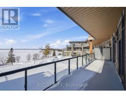 Stunning maintenance-free, resort lifestyle living at The Moorings on Cameron Lake. Beautifully appointed suite with 2 Beds, 2 Baths and over 9 ft. ceilings. Floor-to-ceiling windows create light-filled spaces with unobstructed west-facing lake views and glorious sunsets. A luxurious Kitchen with Quartz Counters/Backsplash, under-cabinet lighting, stainless steel KitchenAid appliances, Gas Cooktop and Wall Oven is a chef's dream. Open concept Dining and Living Room with upgraded Gas Fireplace, opens to an incredible 32 ft. wide water-view Balcony, complete with gas BBQ hook up and plenty of space for outdoor seating and dining. Side-by-side Whirlpool washer and dryer, TWO Underground Parking Spots with adjacent sizeable Storage Locker. The spacious Primary Bedroom, with direct lake view, features Walk-in Closet, Double Closet, luxurious 4 piece Ensuite, double vanity and walk-in shower. Water view Guest Bedroom with walk-in closet. Love having guests? There are two convenient second floor Guest Suites and the building amenities are designed for your active lifestyle - Second floor lake view Fitness Centre features cardio equipment, weights, yoga room, cedar sauna and change rooms. Third floor Owners Lounge features sweeping lake views, gas fireplace, gorgeous lounge, ample dining seating, theatre room and full kitchen for hosting your private dinners and gatherings. Convenient dog wash station. Resort-style outdoor heated Pool and Spa, Tennis/Pickle Ball court, beautiful lake facing courtyard overlooks coveted waterfront amenities that will provide a Swim Platform and Private Marina Docking (10 x 20 ft slips additional fee). Access the Trent Severn Waterway for endless boating, fishing and the Victoria Trail for fun outdoor activities. Exceptional walkability to parks, restaurants, shops and farmers market in charming Fenelon Falls only 90 Minutes from the GTA. Come experience this maintenance-free lakeside lifestyle of convenience and luxury for yourself! (id:61594)