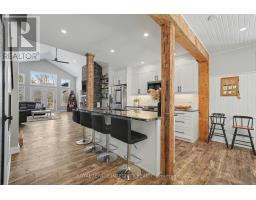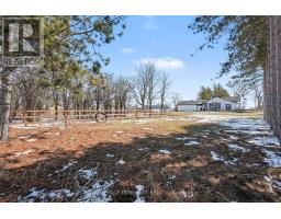 Exceptional hobby farm located just a 5 minute drive to beautiful Perth. Enjoy the serene landscape of this property with mature trees & greenery. The property encompasses 9 acres with 6 acres converted into 3 fenced paddocks. Perfect for raising horses or other animals. The barn is fully equipped with hydro, running water, 4 generous sized stalls a tack room, 3 pc washroom & a common room. Now lets move onto the gorgeous farm house that has gone through an amazing transformation in 2021. The covered front porch wraps around to the side of the house & the main entrance. As you enter the foyer there is a large walk-in closet providing plenty or storage for out door wear. Then you enter the stunning kitchen with center island & seating for 4. There is also a good sized pantry & bar fridge & propane stove for cooking . At the one end of the kitchen is the inviting dining room with plenty of space for family gatherings, you also have access to the front porch. Adjacent to the dining room is a well appointed home office that could also be used as a formal living room or another bedroom. At the other end of the kitchen is the stunning great room with tall cathedral ceilings & a cozy wood burning fireplace. Off the great room you have access to the powder room, laundry room, closet & the 3 car garage with in-floor heating. The great room opens out to the amazing back concrete patio & hot tub & over looks the back of the property. Enjoy dinners on the patio with a direct propane line to your bbq. Or relax in the hot tub after a long day. Off the great room is the wonderful master suite with a convenient electric fireplace. The master suite boasts an oversized walk-in closet, 5 piece bath with the dble sinks being separate from the shower, tub & toilet. The master also has access to the back patio. Upstairs is a 4 pc bath & 2 additional bedrooms. Updates include propane furnace, c/a, septic, windows, roof, electrical & great room & master suite addition on slab. (id:61594)