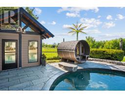 Why choose between home, cottage, or resort when you can have it all? This exceptional 4+1 bedroom executive home sits on a breathtaking 150' x 200' lot backing onto open fields with no neighbours behind, offering total privacy, sweeping sunset views, and a true entertainers dream. Inside, enjoy a light-filled open-concept layout with hardwood floors, crown moulding, a sunroom, and a stylish kitchen with granite countertops, heated floors, stainless steel appliances, centre island with bar fridge, and walkout to your backyard escape. The private primary suite feels like a luxury hotel with its gas fireplace, Juliette balcony, walk-in closet, soaker tub and spa-style ensuite featuring heated floors and glass shower. The finished basement includes a spacious rec room, bedroom, bath, and separate entrance ideal for in-laws or extended family. Outside is where this property truly shines: a resort-style backyard complete with a heated saltwater pool, hot tub, wood and electric sauna, outdoor shower, fire pit, and an absolutely show-stopping outdoor kitchen featuring a stone fireplace, built-in BBQ, keg fridge, bar fridge, smoker, ice maker, sink, ceiling fan, and automatic shutters. Whether you're hosting an intimate dinner or a lively summer party, this space delivers. Lush, low-maintenance landscaping is kept pristine with a Wi-Fi/timer-controlled inground sprinkler system and outdoor lighting for stunning evening ambiance. With a double garage offering front and back doors and basement access, a large shed, lean-to with hydro, and huge driveway, every detail is taken care of. All of this just minutes to Newmarket, Keswick, and Hwy 404, enjoy easy commuting with the feel of country living. This is more than a home; its a lifestyle. (id:61594)