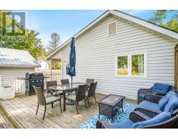 Top 5 Reasons You Will Love This Home: 1) Charming detached bungalow on a spacious lot in the village of Stroud, delivering comfort and convenience for first-time buyers or those seeking a cozy retirement property 2) Lovely curb appeal with soft grey-blue siding, a welcoming front entrance, mature trees, and a detached garage/shop that adds both charm and function 3) Bright and inviting interior filled with natural light, highlighted by a front vestibule and a living room centered around a stunning stone fireplace with an electric insert, ideal for crisp fall evenings or chilly winter days 4) Functional layout featuring a good-sized kitchen and breakfast area with a walkout to a wraparound side porch and large back deck, a spacious primary bedroom with mirrored closets, a second bedroom currently used as an office, a well-appointed 4-piece bathroom with updated cabinetry, and the convenience of main level laundry/mudroom with backyard access 5) The extra-deep detached garage is a true bonus, with two compartments, loft-style overhead storage, a wood stove, and additional heating, making it not only perfect for vehicles but also an excellent workshop for hobbyists or mechanics. 968 sq.ft. (id:61594)