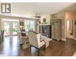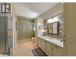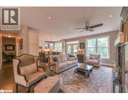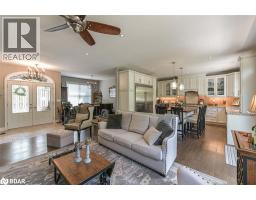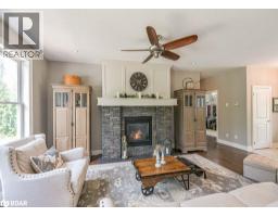 Beautiful bungalow in Wyldwood Estates--Bass Lake Woodlands! Set on a private lot in this sought after area, this bungalow blends elegance, comfort and modern convenience. Inside, you will find 3 bed including a primary retreat with a large walk in closet and luxurious 3 piece ensuite. Two additional upgraded bath, rich hardwood floors and beautiful millwork with panel detailing create an inviting high end feel. The chefs dream kitchen features a massive 4 x 7 island with seating for 8, and industrial style full fridge and freezer, steel appliances and loads of workspace--perfect for entertaining. The open concept living room boasts a stunning stone fireplace, while the lower level family room offers a cozy faux fireplace for relaxed evenings. Enjoy the convenience of the main floor laundry/mud room w/inside entry to attach double car garage that also has extra storage. Additional highlights include 9' ceilings, large games room, a professionally landscaped front walkway and entrance, a 10 x 12 shed plus a rough in electrical panel for a back up generator This home truly has it all--beautiful design with thoughtful upgrades and a picture perfect setting just minutes from Bass Lake, shopping or downtown Orillia. (id:61594)