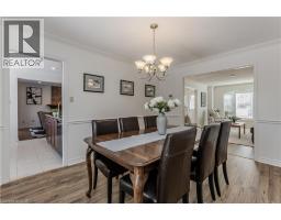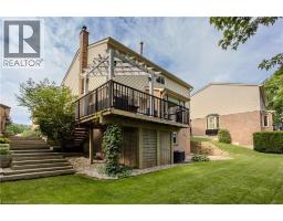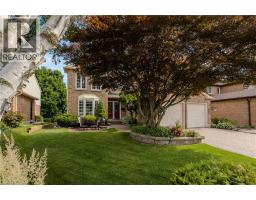 Tucked away on a quiet court in sought-after Headon Forest, this beautifully updated family home offers 2860sf of living space on an exceptional ravine lot. Backing onto a picturesque setting, this property blends comfort with privacy—perfect for families who value both lifestyle and location. Upon arrival, the exceptional curb appeal stands out with a professionally landscaped yard, interlock driveway, and inviting seating area. A new roof and skylight by Halco Roofing add both style and peace of mind. Inside, hardwood floors flow throughout the main level, complemented by modern LED pot lighting with multiple temperature selections and Halo lighting rings. The living room features a bay window, while the dining room provides an elegant setting for gatherings. The kitchen offers corian countertops, SS appliances, rich wooden cabinetry, and a breakfast nook surrounded by wall-to-wall windows. The spacious family room is complete with a new Napoleon 22 gas log fireplace and walkout to the back deck. A convenient 2-piece powder room completes this level. Upstairs, a skylight fills the space with natural light. The expansive primary retreat offers a walk-in closet and a 4-piece ensuite with walk-in shower and soaker tub. Three additional well-sized bedrooms and a 4-piece main bath provide ample room for the whole family. The fully finished walkout basement extends your living space with LED pot lighting, a generous rec room with direct backyard access, an additional bedroom, and a workshop—ideal for hobbies, guests, or teens. Step outside to your private backyard oasis featuring an elevated wooden deck with awning, stone retaining wall, mature trees, manicured gardens, and stunning ravine views. With plenty of green space for kids and pets to play, this is a rare opportunity to enjoy nature right at your doorstep while living in one of Burlington’s most family-friendly communities. (id:61594)