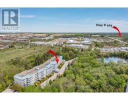 Welcome to Reflections on Bogart Pond! This bright & spacious 906 sq.ft. 2-bedroom, 2-bath condo with versatile office nook offers an open concept layout, large kitchen overlooking the dining & living room w/laminate floor, is freshly painted, professionally cleaned & ready for immediate occupancy. Ideally located within the building, the underground parking space is directly across from the elevator, and the unit is conveniently situated just steps to both the elevator & garbage chute - perfect for easy, low maintenance condo living. Step onto your private balcony from the primary bedroom or office nook & enjoy the peaceful setting and the gentle sound of the nearby waterfall. Enjoy morning coffee on your private balcony, take a stroll along the walking trails & appreciate the quiet atmosphere this well-mainained building is known for. Set within a beautifully landscaped 15-acre park-like setting featuring a scenic pond, residents enjoy access to walking trails & various on-site amenities including a billiards room, party/meeting room, exercise room, guest suite, visitor parking & patio with gas bbq's for resident's to enjoy during the warmer months of the year. Recent upgrades include a newer fridge & stove, owned combi-boiler with tankless hot water heater '22 ($15k) for efficient, worry-free comfort for years to come. Additional highlights include laminate & tile floor, ensuite stackable laundry, California-style shutters, Dryer duct cleaned June '25, retractable balcony screen door & a private key-access storage locker - ideal for bikes & seasonal storage. Close to shops & restaurants of Leslie/Mulock, transit & HWY 404. Experience comfortable, carefree living in a sought-after building of Newmarket! (id:61594)