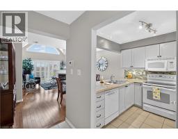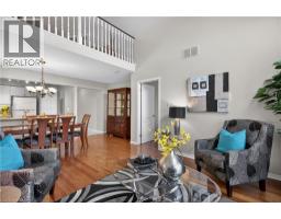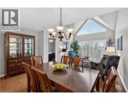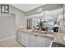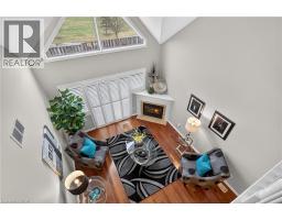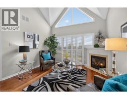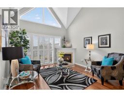 Located in a quiet, well-maintained and highly desirable complex, this 3 bdrm, 2.5 bath executive bungaloft offers low-maintenance living in the coveted town of Ancaster. The attractive ext showcases timeless stone accents, a charming bay window, a covered front porch, & an upper dormer. The property also feat surfaced parking plus a 1-car grg w/ inside entry. Stepping through the front door with bonus phantom screen, a bright & welcoming foyer leads to a thoughtfully designed open-concept layout, feat a well-appointed kitch w/ ample cabinetry & pot lighting. The kitch flows seamlessly into a spacious din area & the stunning liv rm w/ vaulted ceil & oversized windows, Cali shutters, & a cozy corner gas FP. Sliding doors lead to a private interlock patio, offering a peaceful outdoor retreat. The main flr is designed for convenient 1 lvl living, feat a front bdrm w/ flex for guests or a home office, a powder rm, main flr laund, & a well-appointed primary w/ dbl closets and an updated 3-piece ensuite with an oversized glass walk-in shower and additional storage cabinetry. Upstairs, the open loft provides a versatile multi-purpose space overlooking the main level, perfect for a variety of purposes. A spacious second-level bedroom offers a walk-in closet and a full 4-piece ensuite, making it an ideal secondary primary suite. The bsmt lvl feat a finished hallway leading to an unspoiled area with a bathroom rough-in, offering excellent potential for future customization. Backing directly onto Meadowlands Community Park with no immediate rear neighbours, this rare offering provides added privacy and a premium setting. Additional highlights include visitor parking, roof shingles replaced approximately 6 years ago, and updated furnace/central air conditioning. Enjoy the convenience of living just minutes to top-rated schools, shopping centres, restaurants, walking trails, parks, and major highway access - all within the highly sought-after Meadowlands community of Ancaster. (id:61594)