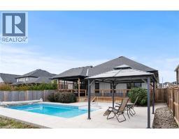 Dream Home with Breathtaking Views! Custom-built bungalow, high-end finishes, and a backyard perfect for summer days & evening gatherings. This gorgeous custom-built bungalow backs onto a serene ravine and the Welland Canal, offering a backyard paradise complete with a heated, salt-water in-ground pool. Every detail of this home exudes quality, from the hand-scraped hickory hardwood floors to the high-end finishes throughout. Step inside to discover 9-foot ceilings, abundant pot lighting, and natural sunlight that fills the main floor. The chef’s kitchen is a true delight, featuring a pot filler, ample counter space, generous storage, and a large granite island perfect for gathering family and friends. The open-concept living and dining room is warm and inviting, boasting a cozy gas fireplace and stylish wood-plank feature wall. Slide open the doors and step onto your private backyard oasis. Entertain on the expansive deck and patio, relax under the shaded gazebo, or take a refreshing dip in your heated pool—all while soaking in the beautiful canal views. Retreat to the luxurious primary suite, complete with sliding doors to a covered deck, a walk-in closet, and a spa-inspired ensuite featuring a soaker tub, large glass shower, and floating double-sink vanity with quartz counters. The professionally finished lower level adds extra living space, including a bedroom with a walk-in closet, a 3-piece bathroom, and a spacious recreation room with another gas fireplace—perfect for family fun or hosting guests. Additional highlights include main floor laundry and a low-maintenance exterior. Located in a vibrant Welland community with farmers’ markets, annual festivals, parks, and endless outdoor activities, this home truly has it all. Don’t miss the chance to make this stunning property your forever home! (id:61594)
