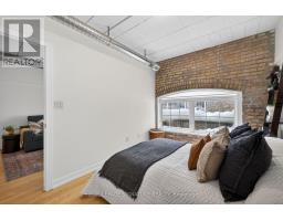 All aboard! You're right on track to finding your next home with this authentic hard loft conversion at Foundry Lofts. Once a historic train factory, this two bedroom, one bathroom condo blends industrial character with contemporary comfort. Soaring ceilings, exposed brick, factory style windows, and hardwood flooring throughout create a bold and inviting space. The moody loft vibes are complemented by a functional open concept layout with a stylish kitchen and bathroom finished with a contemporary touches. The west facing unit is tucked away from the hustle and bustle of Lansdowne, offering added privacy and a quieter living experience. With underground parking and additional locker for storage, this low maintenance lifestyle checks every box. Beyond the unit, the building is known for its warm and tight knit community and standout amenities. Residents enjoy a stunning and truly unique 16,000 square foot atrium, a fully equipped gym, theatre room, and party room. Nestled between the west end's trendy and vibrant Junction, Geary Avenue: dubbed the city's coolest street, and the exciting Galleria on the Park redevelopment, this is a rare opportunity to own in one of the city's most unique buildings. Full steam ahead to a home rich in history, big on character, and ready for its next chapter. (id:61594)