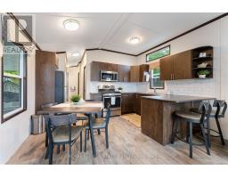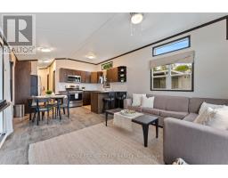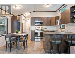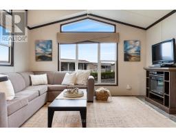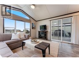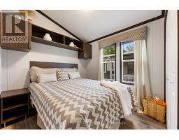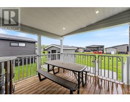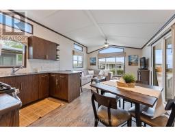 A rare opportunity in Wyldewood Beach Club! Welcome to Unit #213a newer, fully financeable 2-bedroom, 1-bathroom cottage with no rear neighbours, just a stone's throw from Lake Erie beaches.This well-maintained unit features a spacious composite deck, partially covered with an extended section and a custom fire pit patioperfect for outdoor living and entertaining. Inside, enjoy an open-concept layout with vaulted ceilings and transom windows, creating a bright, airy atmosphere throughout the kitchen, dining, and living areas. The kitchen is equipped with stainless steel appliances, ample cabinetry, and a peninsula breakfast bar for casual dining. The primary bedroom includes built-in cabinetry for extra storage, while the second bedroom offers bunk beds with full-step access to the top bunka safe and thoughtful design. Additional features include a large storage shed and low-maintenance finishes, all set in a highly desirable location close to the lake but without the additional waterfront premiums. Dont miss this unique chance to own in one of Sherkston Shores most popular gated communities. (id:61594)