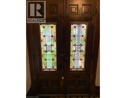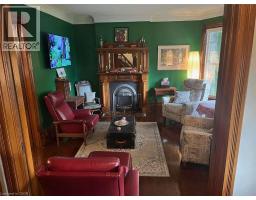 For more info on this property, please click the Brochure button. Discover the perfect blend of historical charm and modern updates in this move-in-ready home, situated on an oversized, mature treed corner lot. With potential for severance into three lots or use as a single-family property, this Zoned RU 3 (duplex/triplex) gem offers endless possibilities. Step inside to admire the timeless elegance of original red oak woodwork, 3 functional pocket doors, an ornate fireplace with a new gas insert, 12” baseboards, detailed window moldings, and stained glass accents throughout. With ceilings over 9 feet high, the home feels both spacious and inviting. Modern updates seamlessly enhance its historic features, offering comfort and practicality. This charming home boasts 3 spacious upstairs bedrooms, each with a closet, and a versatile main-floor den or fourth bedroom, ideal for a home office or guest space. Enjoy the convenience of 2.5 baths, including a master ensuite with heated tile flooring, and a second-floor laundry. The updated gourmet kitchen is a chef’s dream, featuring a large center island, peninsula, custom tilework, tin ceiling, ample cabinetry, and a high-end six-burner gas stove with a double oven. Entertain in the formal dining room with built-in china cabinets or relax outdoors on one of three covered porches. The fully fenced yard is a serene retreat, complete with a water feature, pond, and creek. Additional highlights include a heated workshop, single-car garage, carport, garden house, new mudroom, and a finished basement with a rec room, bonus room, wine cellar, and extra storage - potential for a future in-law suite. Recent upgrades include new windows, a gas furnace, air conditioning, and a gas fireplace. (id:61594)