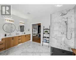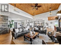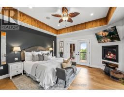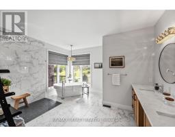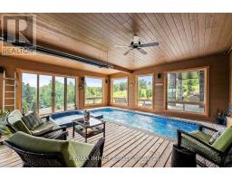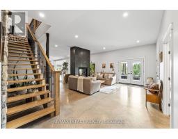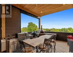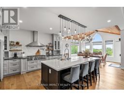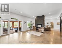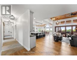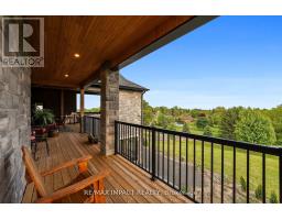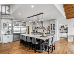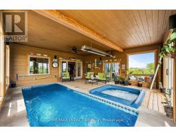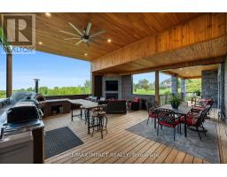 The epitome of refined living; this custom-built masterpiece, crafted with BRAND NEW premium finishes and thoughtful design throughout. Spanning approx. 5,600 sq ft of living space, this home offers a dream-worthy primary suite with vaulted pine tray ceilings, spa-style 5-pc ensuite, soaker tub, and private water closet. Entertain effortlessly in the gourmet kitchen, complete with Thermador appliances, a stunning walk-through pantry, and high-end countertops that combine beauty and functionality. The open-concept design flows seamlessly into the great room and out to a 25 x 25 covered patio; an entertainers dream. Outdoors, enjoy a full chefs setup with a Forno Bravo pizza oven, Big Green Egg smoker, built-in BBQ, fireplace, and TV, all under soaring 12 pine-clad ceilings. Wellness and leisure are at the heart of this home. The indoor saltwater lap pool and spa-like hot tub offer year-round relaxation. A custom refrigerated wine cellar holds over 600 bottles, while the private home theatre provides the perfect space to unwind or host guests in style. Everyday function meets high design with energy efficient GeoSmart geothermal heating, two oversized garages, a large mudroom, and main floor laundry. The fully finished basement offers even more living space to suit your needs. Large custom windows throughout frame dramatic views, and on clear days, you can take in the distant shimmer of Lake Ontario. This rare and elegant estate is where modern luxury meets timeless and quality craftsmanship. (id:61594)