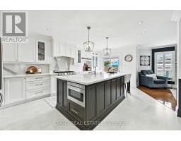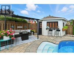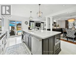 Welcome to this beautifully updated and spacious home in the heart of West Oak Trails. Step inside to a bright, open-concept main level featuring pot lights, and hardwood flooring throughout. The designer kitchen is the true centerpiece, complete with a huge center island, custom cabinetry, and premium finishes make it perfect for both entertaining and everyday living. The generous dining and living area flow seamlessly together, anchored by a cozy gas fireplace, creating a warm and inviting atmosphere. The fully finished basement is an entertainers dream, featuring a built-in bar, entertainment zone, and a second kitchen prep area ideal for hosting gatherings or extended family stays. Step outside and enjoy the professionally landscaped backyard oasis, complete with an inground pool and a stylish cabana, perfect for summer relaxation and entertaining. Ideally located near top-rated schools, scenic trails, recreation centers, and the Oakville Trafalgar Hospital, with easy access to highways and transit this exceptional home truly has it all. (id:61594)