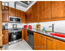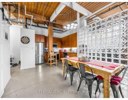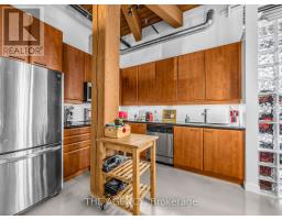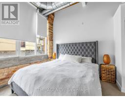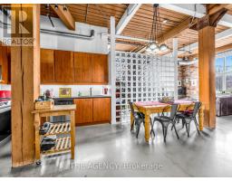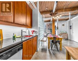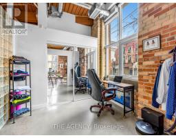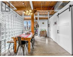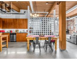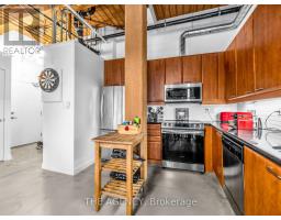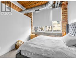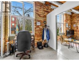 $968 MonthlyA Rare Opportunity to Own a True Hard Loft in the Iconic Chocolate Company Lofts by Plazacorp. Originally Built in 1912 as the Patterson Candy Company Factory and Converted in 2005, This Landmark Building Blends Authentic Industrial Character With Modern Urban Living. Suite 214 is a Highly Sought-after 2 Bedroom, 1 Bathroom Corner Unit, Post & Beam Loft Living. Unlike the More Common Soft Lofts in the Building, This True Hard Loft Features Soaring Ceilings, Exposed Brick, Timber Beams, and Industrial Ductwork Hallmarks of Genuine Loft Design. Expansive North and East Facing Windows Wrap the Suite, Filling the Space With Natural Light and Offering Views Toward Trinity Bellwoods Park. The Open Concept Layout is Ideal for Both Everyday Living and Entertaining, Complemented by an Updated Kitchen With Granite Countertops and Stainless Steel Appliances. Spacious Bedrooms Provide Flexibility for End Users or Investors Alike. This Boutique, Tightly Held Building Offers 24 Hour Concierge, Fitness Centre, Party Room With Terrace, and Underground Parking. Located Directly Across From Trinity Bellwoods Park and in the Heart of Queen West, Steps to Top Restaurants, Cafes, Shops, and Nightlife. Includes One Underground Parking Space and One Locker. A Rare Offering in a Building Where Units Seldom Come to Market. (id:61594)