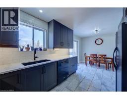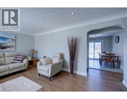Welcome to this beautifully updated 3+1 bedroom, 2 bathroom 1700+ finished sq ft home nestled in a lovely residential neighbourhood with convenient highway access. Offering exceptional functionality and charm, this property is ideal for families, hobbyists, or those seeking versatile living space both inside and out. Step through the front door into a cozy vestibule that opens to a bright and spacious living room featuring a large picture window, crown moulding & pot lighting. The fully updated eat-in kitchen is a true highlight, showcasing stylish countertops & backsplash, double sink, and an abundance of soft-close cabinetry including multiple pot drawers with cleverly hidden storage. The main floor offers two generously sized bedrooms located beside a beautifully updated 4-piece bathroom. Upstairs, retreat to the massive primary bedroom complete with rare & completely updated ensuite with step-in shower with rainfall, double sink vanity, etc. Lots of extra room & bonus storage also on the 2nd floor. The lower level expands your living space with a large updated rec room with 2x6 construction, featuring pot lighting. A bright fourth bedroom with two large windows and spacious laundry and storage area w/room for workshop. Additional storage continues beyond the furnace with built-in shelving. Outside, enjoy a large two-tier deck overlooking a supersized fully fenced backyard including a 15’ x 8’ vegetable garden. A covered 14 x 5'8 side porch provides convenient access to both the home and yard. The detached garage is currently configured as a workshop and extra storage space with power and extensive shelving, complemented by a large patio area, two additional sheds, and a driveway accommodating up to five vehicles. Recent updates include new luxury vinyl flooring and fresh paint throughout. Roof (2018), furnace (2017). Gas hookup available for both BBQ & stove. A fantastic opportunity close to all amenities! A pleasure to show! (id:61594)