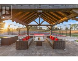 Welcome to your dream home, where luxury, lifestyle, and space come together on an incredible 2.68-acre estate. This custom bungalow offers over 7,500 sq.ft. of total living space, meticulously designed for both family living and high-end entertaining. Featuring 2+3 bedrooms, 3.5 bathrooms, two full kitchens, and a beautifully finished walk-out basement with a versatile bonus room ideal for a home gym, office, or media space - this home has room for it all. Freshly painted throughout and thoughtfully updated, the interior exudes elegance and comfort. The expansive 3-car garage offers ample space, while the separate heated workshop adds practicality for hobbyists or professionals. Step outside into your own private resort. The show-stopping 1,800 sq.ft. pool cabana is a true masterpiece, complete with in-floor heating, a full chef's kitchen equipped with top-of-the-line appliances, his and hers luxury bathrooms adorned with Roberto Cavalli wallpaper, and 3 large aluminum glass bi-fold doors that fully open to the outdoors for seamless indoor-outdoor living. The grounds are professionally landscaped with a full irrigation system and designed to impress. Enjoy the saltwater pool with a tranquil waterfall and deck jets, a fire pit for evening gatherings, a multi-sport sunken court perfect for basketball, pickleball, volleyball, or badminton - convertible into a winter skating rink for year-round enjoyment. This is more than a home - it's a lifestyle sanctuary just waiting to be experienced. 10 minutes to Hwy 403 & Hillfield Strathallan College school bus stop and short distance to other local Private Schools. Full School Report included as last picture. (id:61594)