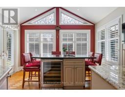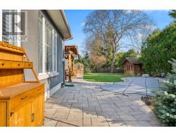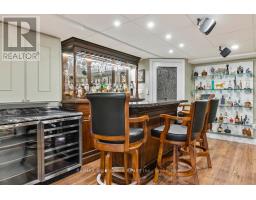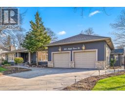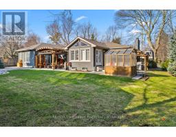 This sprawling ranch bungalow with an oversized double-car garage is ideally located on a prime street in sought-after southeast Oakville. Offering approximately 4400+ square feet of thoughtfully designed living space, this home is filled with natural light and timeless appeal.Set amongst multi-million dollar homes, the property sits on a premium 115-foot frontage lot with a southwest-facing backyard. The private outdoor retreat offers a "Muskoka in the City" feel, complete with a pool, multiple entertaining areas, a custom gazebo, and garden tool house.A welcoming front porch leads into the front foyer and elegant living room, featuring a gas fireplace with custom built-ins, high ceilings with pot lights, and a stylish stone feature wall. The oversized chef's kitchen, breakfast area, and separate dining room showcase expansive windows and beautiful backyard views.The main level offers three bedrooms and three full baths. The primary suite features a vaulted ceiling, gas fireplace, walkout to the backyard, and abundant natural light. The 5-piece ensuite includes a soaker tub, oversized shower, and double vanity, along with a walk-in closet with custom shelving. Main floor laundry provides convenient access to the garage.The fully finished lower level is ideal for entertaining with a dream "man cave" complete with a wet bar, pool table and large screen television. Further, there is a family room and two additional bedrooms, including a large guest suite with nearby full bath and a flexible fifth bedroom or office.Close to top-rated schools including Oakville Trafalgar High School, parks, and shopping at Maple Grove Shopping Centre.Whether enjoyed as-is, renovated, or reimagined as the site of a future custom home, the possibilities are endless. (id:61594)