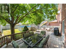 OFFERS ANYTIME. Step inside this inviting home with large entry where thoughtful updates blend comfort and style. The eat-in kitchen showcases elegant quartz waterfall countertops and modern stainless steel appliances. Enjoy open-concept living as the kitchen overlooks both the backyard pool and the cozy family room perfect for everyday living and entertaining. Off the kitchen you will find a formal dining and living room. The kitchen also features a two-way sliding walkout, connecting indoor and outdoor living with a spacious deck ideal for summer dining or relaxing in the shade of mature trees. Hardwood flooring on the main floor infuses warmth and timeless appeal. Upstairs, four spacious bedrooms provide comfort for the whole family. The primary retreat features a large walk-in closet and a spacious ensuite, complete with a soaker tub and separate shower your own private get-away. The second floor also has great storage with two linen closets. Practical touches are found throughout: a covered porch, the oversized two-car garage includes generous loft storage and direct access through the main floor laundry with a utility sink and extra storage closet. The basement offers fantastic potential with high ceilings and a smart layout with utilities tucked to the side, maximizing your options for a future finished space. There's even a cold cellar for extra storage. Outside, enjoy your own backyard getaway with a 24-foot above ground pool (new liner and pump), plenty of room to play, enhanced by privacy fencing and a backdrop of mature trees. The expansive deck and sprawling yard make this the perfect spot for gatherings or relaxing in nature. The garden shed adds even more storage. This property is tailor-made for families seeking both comfort and the flexibility to grow into a space they'll love for years to come. Furnace 2022, AC 2023, Roof 2018, many windows 2023, gutter guards 2021 (id:61594)