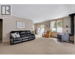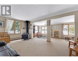 Enjoy life on the shores of picturesque Patterson Lake, while investing in your future. On 1.6 lovely treed acres, this comfy bungalow-home offers you the opportunity to add value and build equity - while watching the lake lap against the shoreline. This three bedroom, 1.5 bathroom home, or all season retreat, also has two garages, one with a workshop. The home's large welcoming BBQ-sized deck has patio doors opening to light-filled living room with woodstove. Adjacent to the living room is full-length sitting room with wall of windows for panoramic never-ending lake views. From the living room, a wide opening takes you into the sunny kitchen with oak cabinetry, desk nook and ceramic floor. The primary bedroom has 4-pc ensuite with combined tub and rainhead shower. Two more bedrooms, a powder room and laundry room with washer, dryer plus lots of storage cupboards. At the waterfront, you have boathouse and on upper level is large bunkie. This guest bunkie has two bedrooms, electric baseboard heating and patio doors to its deck with mesmerizing unobstructed views of the lake. The hobbyist and car enthusiast will appreciate the detached big double garage-workshop that's insulated, has 250V, concrete floor and two drive-thru garage doors with auto garage door opener. The detached single garage includes good-size storage shed. Huge coverall-shed for more storage and projects. Internet & cell service available. Just down the road 10 mins is the Purdon Conservation Area known for its beautiful Showy Lady's Slipper orchids and natural heritage site. Located on private road with Patterson Lake Rd Association overseeing the maintenance & snowplowing of the road; resident fee is $400/year. 15 mins to Lanark, 30 mins Perth or 1 hr Kanata. (id:61594)