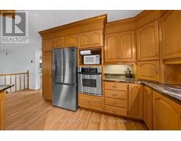 Welcome to this beautiful raised bungalow featuring four spacious bedrooms and an oversized double-car garage. The tiled entranceway leads to the main floor with newly refinished hardwood floors and a bright, open-concept layout. The modern kitchen offers a centre island, downdraft cooktop, stainless steel appliances, and flows seamlessly into the large dining area and sun-filled living room with expansive windows. Two generous bedrooms with wall-to-wall closets and an updated four-piece bathroom complete the main level. Enjoy peace of mind with newer vinyl windows, a durable steel roof, and a newly installed patio door leading to the large deck with aluminum railings. Inside access to the oversized double garage adds everyday convenience. A hardwood staircase leads to the fully finished lower level, featuring a spacious rec room with large windows, two additional bedrooms, including one oversized, and an updated three-piece bathroom. This level also includes newly installed luxury vinyl flooring, a full laundry room, and plenty of storage space. Additional features include 200 amp service, a high-efficiency natural gas furnace, central air conditioning, and fresh paint throughout. Additional oversized detached garage for workshop, vehicles or toy storage. Close to parks, schools and easy access to main road. (id:61594)