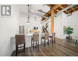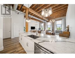 $638.51 MonthlyDiscover unparalleled luxury in this stunning penthouse loft, offering a rare combination of soaring two-storey ceilings and oversizedwindows that flood the space with natural sunlight while capturing breathtaking river views. Authentic original wood beams and striking stonewalls evoke a sophisticated NYC vibe, infusing the home with timeless elegance and character.Designed for grand living and effortless entertaining, the expansive open-concept layout easily accommodates a full living room set andfull-sized dining table with sideboard - no compromise on space here. The fully renovated chefs kitchen is a showstopper, featuring quartzcountertops, seating for six at the impressive breakfast bar, abundant custom cabinetry, and a walk-in pantry providing exceptional storage.Step outside to the Grand River, where you can enjoy serene walks along the waters edge or simply unwind by the riverbanksan incredibleextension of your living space.Upstairs, retreat to a lavish two-room primary suite complete with a cozy sitting area, walk-in closet, and serene river vistas. A spacioussecond bedroom and a versatile denideal for a stylish home officecomplete the upper level.Enjoy the exceptional convenience of two side-by-side parking spaces, a rare luxury, although you may never need your car in this vibrant,walkable community. Dont miss this unique opportunity to own an authentic loft that masterfully blends historic charm with modernsophisticationand exclusive riverfront living. (id:61594)