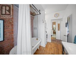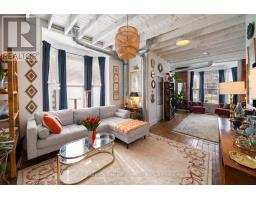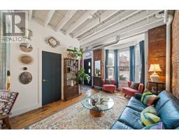 Charming and full of character, this 2 bed, 2 bath end-unit townhome offers a rare blend of historic charm and modern updates. Built in 1886 and beautifully maintained, this historic home features soaring 10-foot ceilings, exposed brick walls, and large windows that fill the space with natural light. The functional layout includes a bright living area, an updated kitchen with a Frigidaire induction stove with air fryer (2022), stainless steel GE counter-depth fridge with water and ice (2023), and a dishwasher. Upstairs, you'll find two well-appointed bedrooms along with a convenient second-level stacked washer and dryer. Step outside to a private, fenced backyard including an awning perfect for relaxing or entertaining, along with one dedicated laneway parking space with room for up to two cars. Ideally located on a quiet street just steps to Corktown Park, the Wentworth Stairs, King William's vibrant restaurants, cafes, and bars, and directly across from Queen Victoria Elementary School. Homes with this much character and history don't come around often! (id:61594)