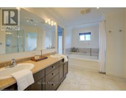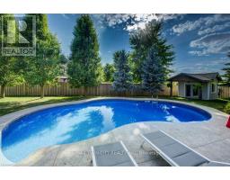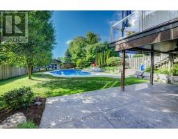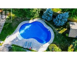Exquisite Custom-Built Home with Walkout Basement & Inground Pool, set on a picturesque quarter-acre lot! This exceptional residence offers nearly 5,000 sq. ft. of luxurious living space, including a fully finished walkout basement. From the moment you step inside, the craftsmanship is unmistakable, with soaring ceilings, French doors, crown moulding, elegant wainscoting, and gleaming hardwood floors defining the main level. Just off the foyer, a private home office provides the perfect space for work or study. The grand two-storey living and dining area showcases a cast stone fireplace with floor-to-ceiling mantle, creating an impressive focal point. The adjacent chef's kitchen is both stylish and functional, with granite countertops, a tile backsplash, gas range, abundant cabinetry, island seating and a bright breakfast area with sliding doors to the upper deck. A cozy family room, powder room, laundry area, and mudroom with access to the triple-car garage complete the main floor. Upstairs, the primary suite is a true retreat, complete with a private balcony overlooking the backyard, a walk-in closet, and a spa-like 5-piece ensuite with double vanity, soaker tub, and glass shower. The three additional bedrooms include one with a private ensuite and walk-in closet, and two more joined by a Jack-and-Jill bathroom-all overlooking the stunning great room below. The fully finished walkout basement offers excellent in-law suite potential, complete with a kitchenette/wet bar, large recreation room, bedroom with ensuite and walk-in closet, home gym or den, and a powder room. Outside, you'll find a private backyard oasis with a glass-paneled deck, lower patio, and inground pool surrounded by beautifully landscaped gardens. This remarkable property offers the perfect blend of elegance, space, and resort-style living. (id:61594)