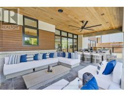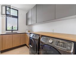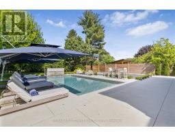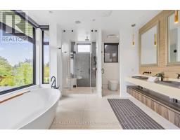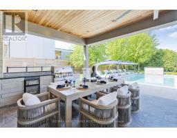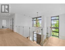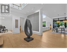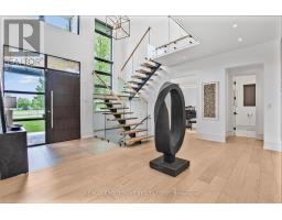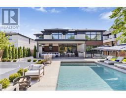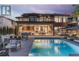 Stunning custom-built modern home designed by David Small located in West Oakville. This 2-storey, 5-bedroom, 5 bathroom residence spans over 4,000 square feet of above grade living space and has approx. $250,000 in recent upgrades. The grand foyer features 20-foot ceilings and large windows that allow natural light to flood the area. The open concept main level offers panoramic views and leads into the living area, also featuring 20-foot ceilings & Lutron Control 4 Lighting system. Sleek designer kitchen is equipped with custom-made Scavolini cabinets, high-end Dacor appliances, a cooktop stove, and a large walk-in pantry. The spacious family room includes a gas fireplace and large sliding glass doors that provide access to the fully fenced private backyard, complete with an inground pool, basketball court, and entertainment area. The 2nd level boasts a stunning primary bedroom with a 5-piece ensuite, double sinks, & walk-in closet. Additionally, there are 3 more generous bedrooms; 2 of which share a 4-piece Jack & Jill bathroom, & another with ensuite privileges as well as a laundry room completing the 2nd level. The fully finished lower level features heated floors, recreation room with gas fireplace, large gym, ample storage space, another bedroom, a 3-piece bathroom, a state-of-the-art theatre room, & a walk-up to the stunning backyard. The backyard has been meticulously landscaped and features a basketball court, fireplace, inground pool, inground sprinkler system, Lutron lighting system, and an entertainment area. Additional amenities include garage car lift, Scavolini closets, two furnaces, two air conditioners, Hunter Douglas motorized blinds, security film on all windows and a paved driveway accommodating up to six cars. Located within walking distance to several top schools, restaurants, Lake Ontario, coffee shops, and minutes from downtown Oakville, the QEW, and Appleby College. Do not miss the opportunity to own this exceptional home. (id:61594)