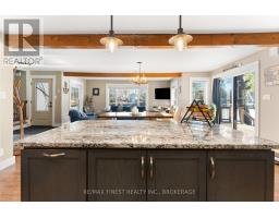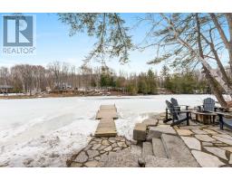 Welcome to your private waterfront retreat on Sydenham Lake, offering an incredible 312 feet of shoreline tucked into its own quiet bay just off the main lake. This protected shoreline provides the calm waters ideal for swimming, fishing, docking, and year-round lake enjoyment. Outdoor living is at its finest with a wraparound deck showcasing lake views and a stunning limestone patio designed for entertaining at the water's edge. Unwind in the hot tub beneath a custom-built gazebo after a day on the lake. This property also includes a double-car garage, a fully paved driveway, and a newly built storage building-providing ample storage for vehicles, tools, and recreational equipment. The home has been extensively renovated and thoughtfully updated. The custom-designed kitchen features granite countertops, a large island, and solid oak flooring-perfect for gathering and entertaining. Two beautifully updated bathrooms including a spa-inspired ensuite with a glass shower and deep, stand-alone soaking tub-an ideal retreat after a day outdoors. Additional upgrades include a new steel roof, siding and stone exterior, and new windows and flooring. A complete list of improvements is available upon request. This is a rare opportunity to own a truly exceptional waterfront property on Sydenham Lake-where privacy, modern comfort, and four-season recreation combine to create an unforgettable lakeside lifestyle. (id:61594)