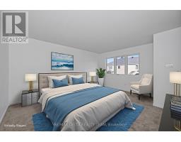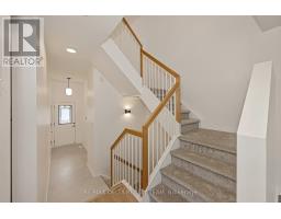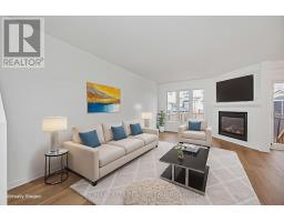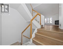 Beautifully maintained and freshly painted 3-bedroom, 2.5-bath freehold townhouse in the highly sought-after Chapel Hill community. Enjoy exceptional privacy with no direct front neighbours. The main level features new luxury vinyl flooring in the living and dining rooms, complemented by a cozy gas fireplace. The bright, eat-in kitchen offers modern updates including stainless steel appliances, new Quartz countertops, a new backsplash, updated hardware, and stylish pass-through cutouts overlooking the main living area. Upstairs, you'll find brand-new carpet throughout. The spacious primary bedroom includes a walk-in closet and a 4-piece ensuite. 2 other good size bedrooms complete the 2nd level. The finished basement provides a generous recreation room with new carpet and ample storage space. Additional updates include: All bathrooms with new toilets and vanities. Freshly painted garage door and front door, New fire alarms, Roof (2019) AC (2015) Freshly painted rear fence, new steps from the patio door. This move-in-ready home offers comfort, style, and peace of mind-all in an ideal family-friendly neighbourhood. Some photos virtually staged. (id:61594)