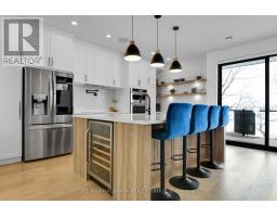 Luxurious 3-Storey Residence Backing onto NCC Parkland w Panoramic Ottawa River & Gatineau Hills Views Built in 2023 and set in a quiet, tucked-away downtown location, this exceptional 3+1 bedroom residence backs directly onto NCC parkland and offers breathtaking year-round views of the Ottawa River and Gatineau Hills. Featuring striking architecture and curated designer finishes, this home delivers a rare blend of privacy, elegance, and an unparalleled riverside lifestyle. The open-concept main level is designed for both grand entertaining and refined everyday living. A spacious living room is anchored by a stunning three-sided gas fireplace, flowing seamlessly into an expansive dining area ideal for hosting large gatherings. The chef's kitchen is a true showpiece, showcasing a dramatic 5' x 8' quartz island, top-of-the-line cabinetry blending sleek modern finishes w textured wood accents, and exquisite appliances perfect for gourmet creations. A stylish powder room with floating vanity & designer wave-pattern accent tile completes the level. Step outside to the spacious terrace off the kitchen, ideal for al fresco dining with tranquil river views. The second level features a serene primary suite with captivating vistas of the Gatineau Hills. The spa-inspired ensuite offers a double glass steam shower, freestanding soaker tub, double vanity, imported porcelain tile finishes. Two additional generous bedrooms share a beautifully appointed guest bath. A thoughtfully designed laundry room includes full-size appliances, folding counter, and hanging rod. Steps lead up to the spectacular rooftop terrace with sitting area, six-person hot tub, and aluminum and glass railings creating a private elevated retreat. The walk-out lower level offers an additional bedroom, full bath, & spacious media room with terrace doors to the patio and fenced rear garden with private gate to parkland. Garage includes workshop space and secure storage. Simply unbeatable. (id:61594)