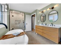 Welcome to 217 Jones Road-an extraordinary residence nestled in the prestigious and tranquil Fruitland Road neighbourhood of Stoney Creek. Set on a rare, fully fenced approx. 82.22' x 200.42' lot, home offers a peaceful, private retreat with exceptional outdoor space. Whether you envision entertaining on a grand scale, cultivating your own garden of fresh vegetables & fruit trees, or simply creating a backyard haven for family fun & relaxation. With over $400,000 in premium renovations, this meticulously redesigned home delivers refined living. The main flr features a beautifully appointed front office ideal for professionals, a stunning staircase centerpiece, a private wing with a bedrm-perfect for guests, in-laws, or multigenerational needs. Upstairs you'll find 3 spacious bedrms, including a luxurious primary suite with spa-inspired 4-piece ensuite, along with the added convenience of bedrm-level laundry. The fully finished basement includes a 5th bedrm, 3-piece bathrm and is built on a core slab floor system, providing both acoustic privacy and the infrastructure for a potential self-contained in-law or income suite with separate access. Enjoy parking for 6+ cars in the expansive driveway plus a double garage. Enjoy the convenience of being just minutes from major retailers like Costco and Starbucks, boutique shopping, top dining spots, and all essential services. Easy connections to QEW, Red Hill Parkway, and local transit, making travel into Hamilton, Niagara, or the GTA smooth and efficient. For those who value lifestyle, the area is a gateway to Niagara wine country, farm-to-table markets, and seasonal fruit stands, all just a short drive away. Nearby conservation areas, scenic hiking trails, and access to Lake Ontario's waterfront, perfect for weekend activities. Highly rated schools, community centres, & beautiful parks, & it's easy to see why this location checks every box for families, professionals, and anyone seeking a balanced, enriched way of life. (id:61594)