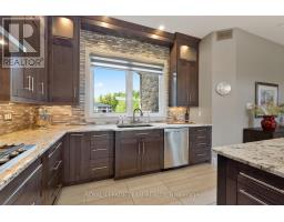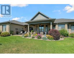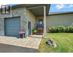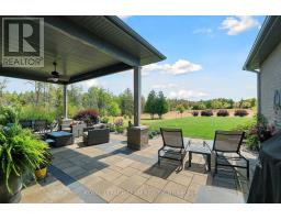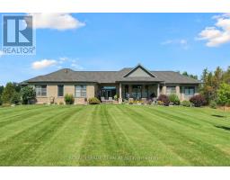 Welcome to this executive-style bungalow offering refined luxury and timeless design on a beautifully landscaped 2+ acre country lot. Impeccably built with a stately stone and brick exterior; this home exudes sophistication with warmth from the moment you arrive. The covered front porch and elegant glass entry open to soaring tall ceilings, rich hand-scraped hardwood floors, and expansive transom windows that flood the home with natural light. The open-concept living space centers around a striking double-sided fireplace and flows seamlessly into the designer Deslaurier kitchen, a true showpiece featuring full-height custom cabinetry, granite countertops, built-in stainless steel appliances, and a grand island with seating for four; perfectly designed for entertaining or for everyday living. The spacious primary suite offers a tranquil retreat with large windows, a walk-in closet, and a spa-inspired ensuite showcasing dual vanities and contemporary finishes. Additional bedrooms and a main-floor office and cozy den provide flexibility for family or remote work. Enjoy the relaxed country air outside under a covered 16 x 36 back patio with discreet power sunscreen, while looking out onto manicured lawns, lush gardens, and a completely private backdrop, ideal for gatherings or peaceful evenings as the sun sets. An attached oversized 4 car garage with extra tall insulated doors, direct basement access, a fully paved driveway with decorative lit stone pillars, and impeccable attention to detail complete this exceptional rural property. Experience the perfect blend of luxury, comfort, and craftsmanship in this remarkable bungalow. Truly a home to fall in love with! Welcome Home! (id:61594)