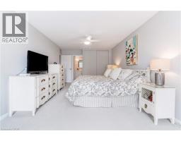 Welcome to over 1,500 sq ft of meticulously renovated living space in one of Brontes most prestigious condo communities. This 2-bedroom plus den suite in Ennisclare on the Lake offers a rare blend of elegance, comfort, and lakefront lifestyle. No detail has been overlooked in this thoughtfully upgraded condo unit. Enjoy smooth ceilings throughout, with a coffered ceiling accenting the redesigned kitchen and entertainers dream. Featuring solid maple, soft-close cabinetry, a large island with built-in garbage/recycling drawers, a pot & pan drawer, quartz countertops, and high-end stainless steel appliances (2023), this kitchen is both functional and beautiful. The living areas feature handscraped, wire-brushed engineered hardwood, while the bedrooms and den offer plush, dense luxury carpeting for ultimate comfort. Both bathrooms have been completely renovated with stylish, modern finishes and upgraded fans. The laundry room includes new cabinetry, flooring, and appliances all replaced in 2023. Freshly painted in the summer of 2023, the unit is truly move-in ready, featuring Decora switches throughout and all-new lighting, including ceiling fans in the bedrooms and den. The open-concept layout is bathed in natural light, with a private balcony perfect for unwinding. Ennisclare on the Lake offers resort-style amenities: indoor pool, tennis and squash courts, state-of-the-art fitness centre, party and games rooms, library, and a hobby workshop. All of this, just steps from Bronte Marina, waterfront parks, boutique shops, and top-tier dining.Whether you're downsizing, investing, or simply seeking a peaceful place to call home, this stunning lakeside retreat has it all. Experience the best of Oakville's waterfront and welcome home to Ennisclare on the lake. (id:61594)