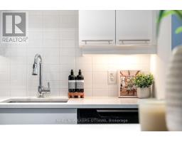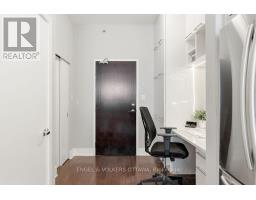 Rarely offered 1 bedroom + Study located just steps to Westboro and Wellington Village! This condo offers many coveted upgrades from soaring 9'8" ceilings, custom floor-to-ceiling built-in cabinets that span from the foyer to the kitchen, Hunter Douglas Blinds, and an oversized covered south-facing balcony. This 709sqft condo is perfect for those who work from home, but also love entertaining. With a dedicated workspace surrounded by ample storage that leads to an open concept layout. The gourmet kitchen impresses with all-white cabinetry, white quartz countertops, high end appliances including a Samsung Fridge, Fisher & Paykel Dishwasher, and Electrolux Stove. The 7'6" island offers seating for 4 - ideal for entertaining or casual meals. The living/dining is spacious with proper space for a couch and T.V, along with room for a 4-6 person dining table. Step outside onto the oversized, south-facing covered balcony (76sqft) to enjoy sunlight, fresh air, or 3-season entertaining. The primary bedroom has blackout Hunter Douglas blinds and custom built-in storage in the closet. The bathroom has an upgraded glass shower and a built-in cabinet. Amazing location - live just a 10 min walk to Lululemon, Equator Coffee, and top rated restaurants. Or, a 10 min stroll to the amenities along Wellington St. 1 underground parking (P3-114), 1 Storage Locker (P2-39) and 1 Bike Rack Included! Amenities include: Gym, Theatre Room, Party Room, Car Wash Bay, Pet Wash, and Rooftop Terrace with BBQs! Minutes from Bicycle Trails, Parks & Ottawa River Parkway. (id:61594)