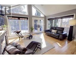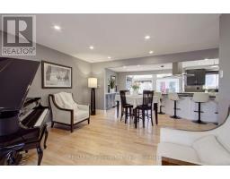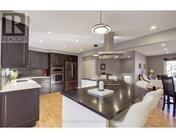 Featured on HGTV's "Top of the Block!" Prepare to be impressed by this meticulously renovated, sun-drenched raised bungalow in a prime Burlington neighbourhood. The main level (renovated 2020) features gleaming maple hardwood floors and a massive open-concept chef's kitchen boasting custom cabinetry, quartz countertops, a 6-seat island, and a built-in gas range. The formal living/dining area -complete with a grand piano included with the home- is perfect for entertaining. The true showstopper, however, is the sunken family room addition, featuring vaulted ceilings, a natural stone gas fireplace, 80 inch flat screen tv, and a walk-out to a private 2024 composite deck with a built-in hot tub. The bedroom wing of the main level is finished with equal attention to detail and offers 3 sizable rooms and an updated 4 p/c bathroom that will suit most buyers' needs. The modern finishes continue to the lower level (renovated 2025), offering a cozy recreation room with a soapstone-hearth fireplace, a den, laundry, a full 3pc bathroom, storage and a walk-out to an impressive double car garage. Hobbyists will love the epoxy flooring and separate heated workshop space! Recent Upgrades Include: AC (2023), Deck (2024), Furnace/HWT/Main Level Reno (2020), Lower Level Reno (2025), Washer/Dryer (2024) 200-amp breaker panel, front porch aggregate (2024). Outside the home you will find a sprawling yard with manicured gardens and plenty of evergreen trees, offering privacy year round! Walk to schools, parks, shops and restaurants, including a neighbourhood favourite Nostalia Games Cafe! This home has it all! (id:61594)
